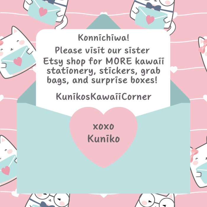 I invite you to visit my other kawaii shop on Etsy, where you will find a big selection of stationery goods, grab bags, and surprise boxes!
