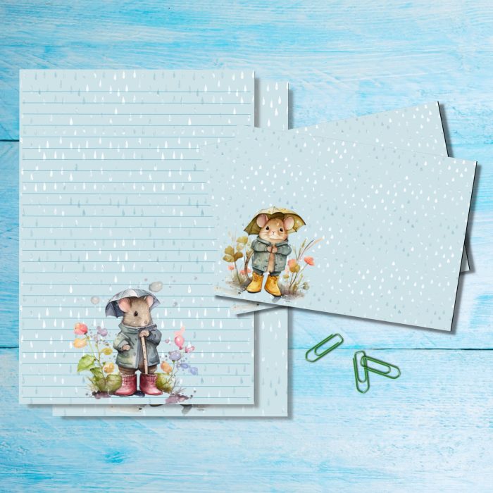 April Showers A5 letter writing stationery set, Cute penpal supplies, Snail mail kit, Lined or unlined sheets with matching envelopes$10.67
