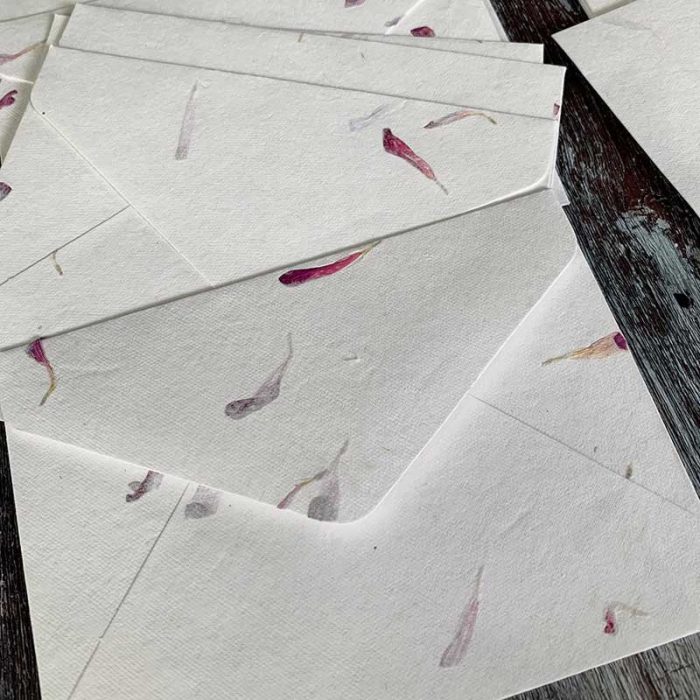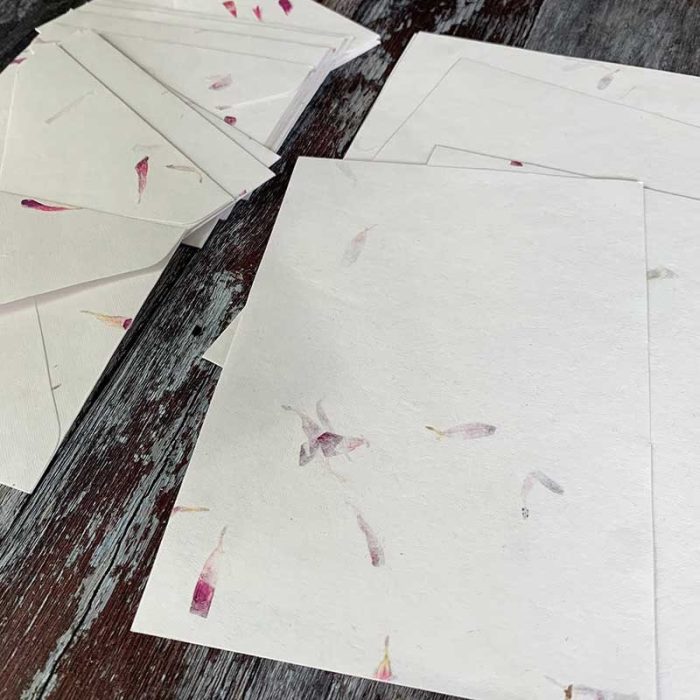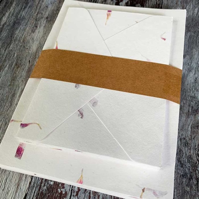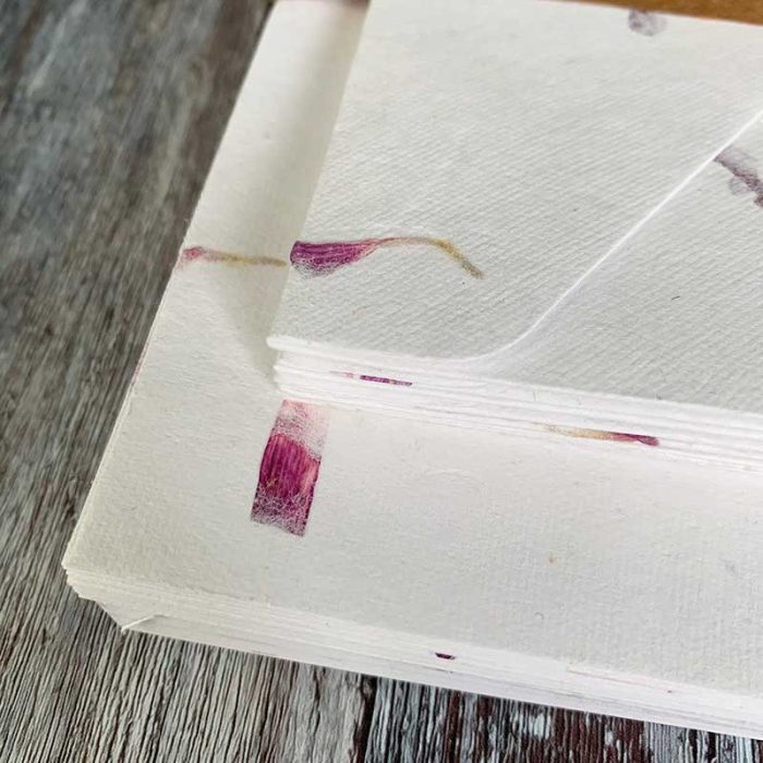 Our eco friendly handmade paper just got better with the addition of dried and pressed flowers! What a perfect finishing touch!