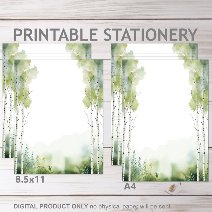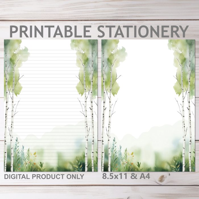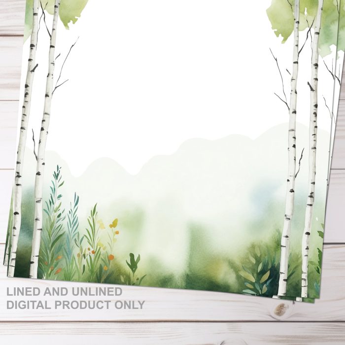 Birch Trees Printable JW Stationery Lined and Unlined in A4 and 8.5×11 US Letter Size | Print at Home Forest Tree Nature Lined Writing Paper$2.48