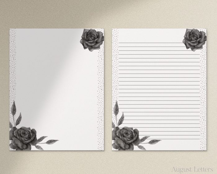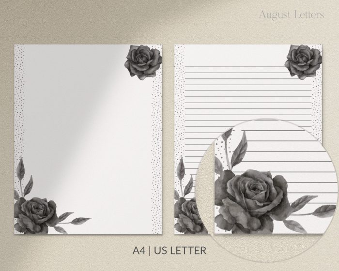 Black Roses, Gothic Halloween, Printable Letter Writing Paper / A4, 8.5×11 / Lined Unlined / Digital Stationery Paper / Watercolor Roses$2.40