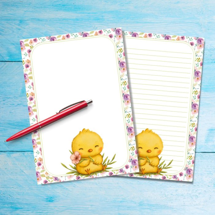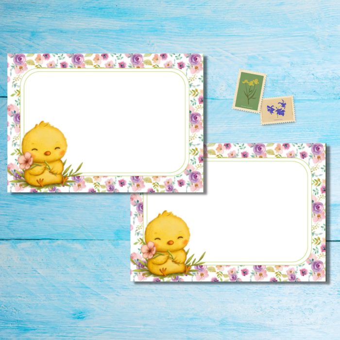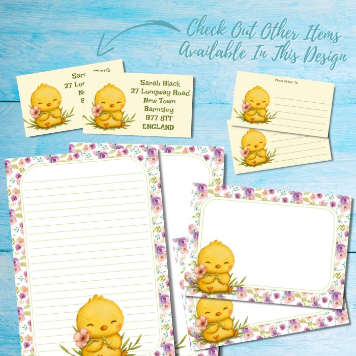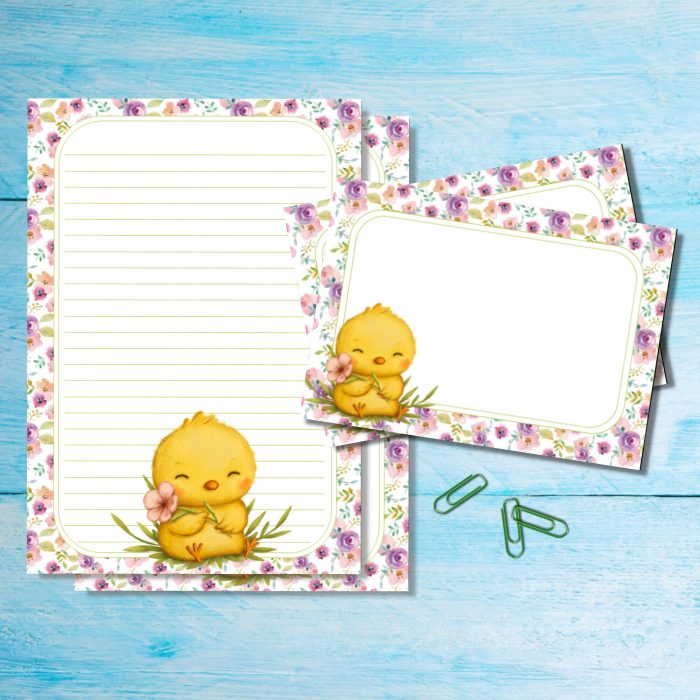 With a border of spring flowers surronding an adorable chick decorating all of the items in this set, it is perfect to send across the seas and spread a little joy with a letter or two!!