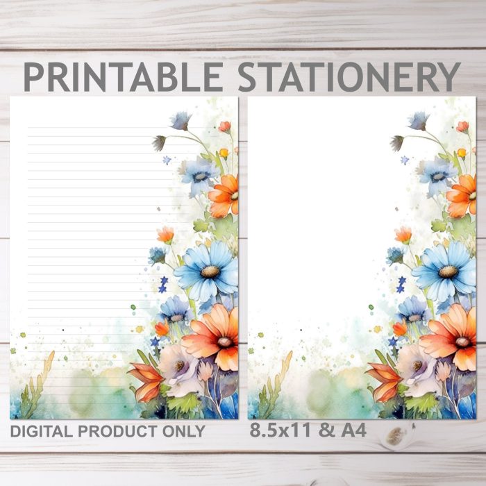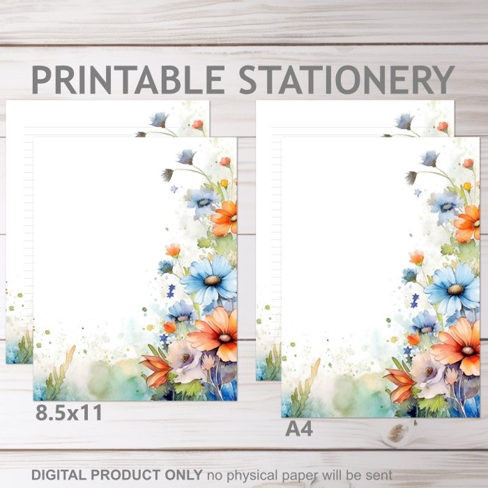 Colorful Flowers Wildflower Printable Stationery Notepad Lined A4 and 8.5×11 US Letter Size Nature Print at Home Letter Writing Paper$2.48
