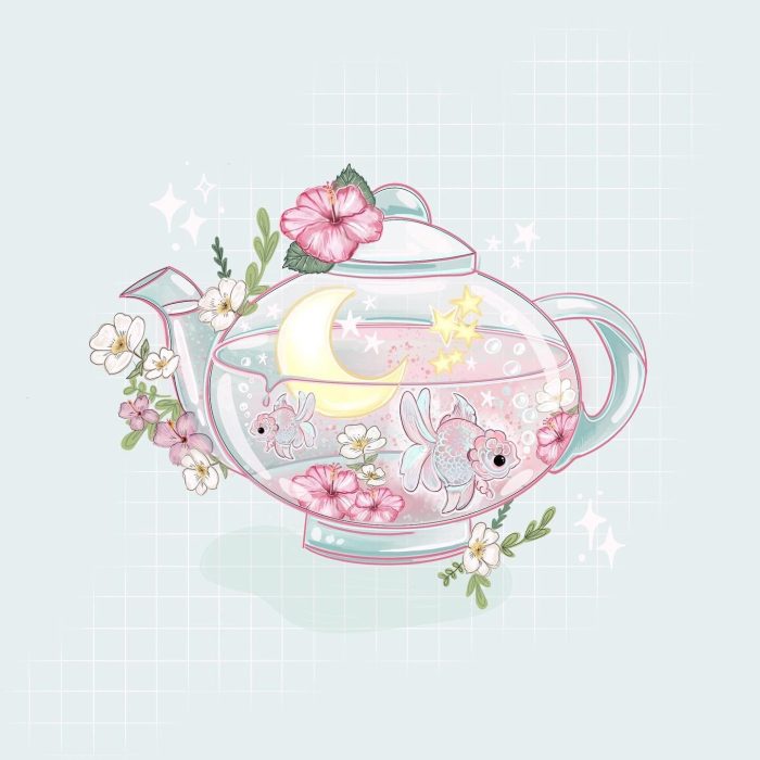 Kawaii tea , moon, tea fruit sticker pack// Digital Art, Stickers, Kawaii Illustration, space, Stationary, Magic , bullet journal.