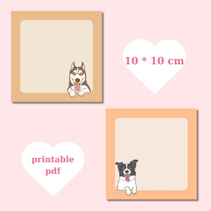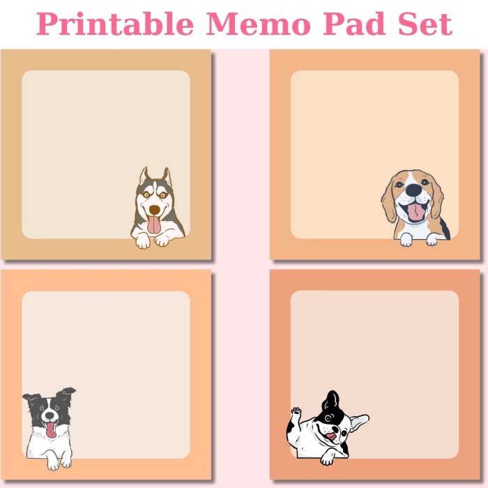 *Printable 4-Piece Set of 10×10cm Cute Dogs Themed Memo Pads*