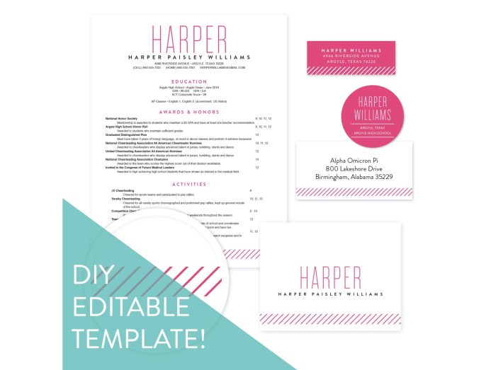 DIY printing instructions compatible with Avery Labels are included with every Editable Sorority Packet Template order. *PLEASE NOTE* that full-bleed designs (templates with graphics that run off the edge of the page) CANNOT be printed properly using a home printer or by some local print shops. To ensure your DIY templates print perfectly, add on high-end professional printing: