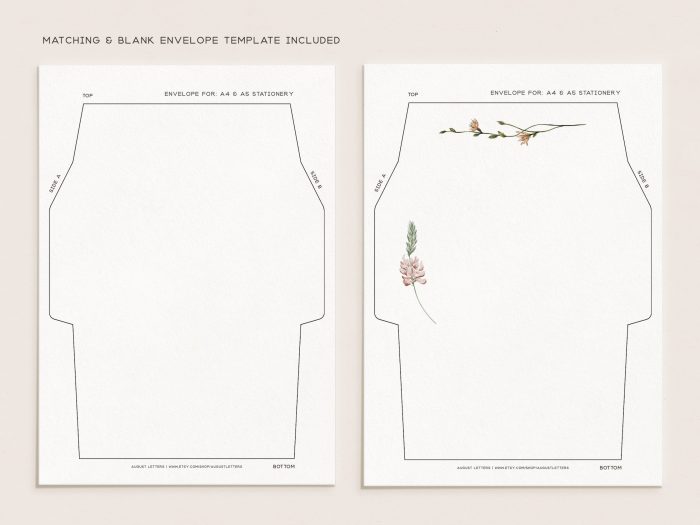 Our new stationery kits now include matching envelope designs as well as blank envelope templates! With your purchase, we’ll include a guide on assembling your envelopes and different ways to use your new templates. Your envelopes are sized to fit A5 paper and sized to print on A4 paper