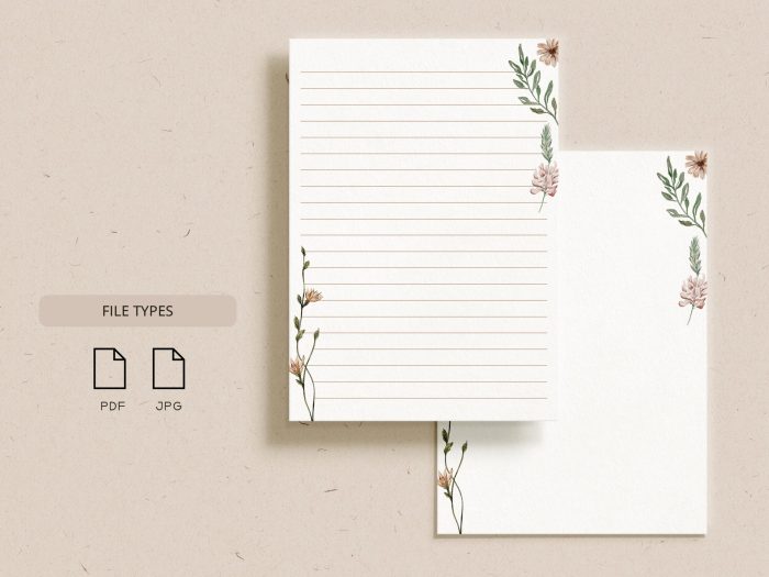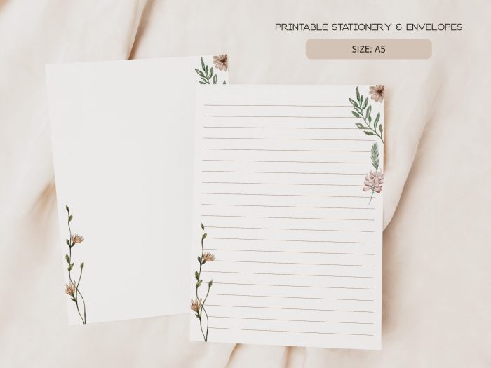 Be the first to review “Elegant Blooms | Printable Stationery & Envelopes | A5 | Lined, Unlined Digital Letter Writing Paper | FL01”