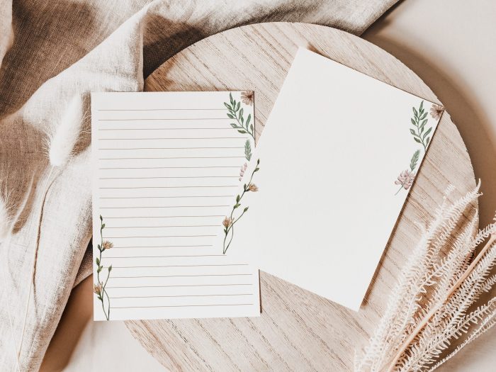 ∙ 1 lined and 1 unlined letter writing paper in the following sizes: A5