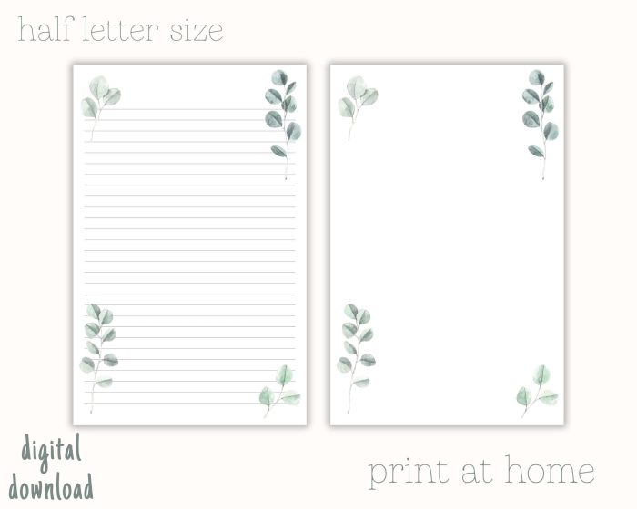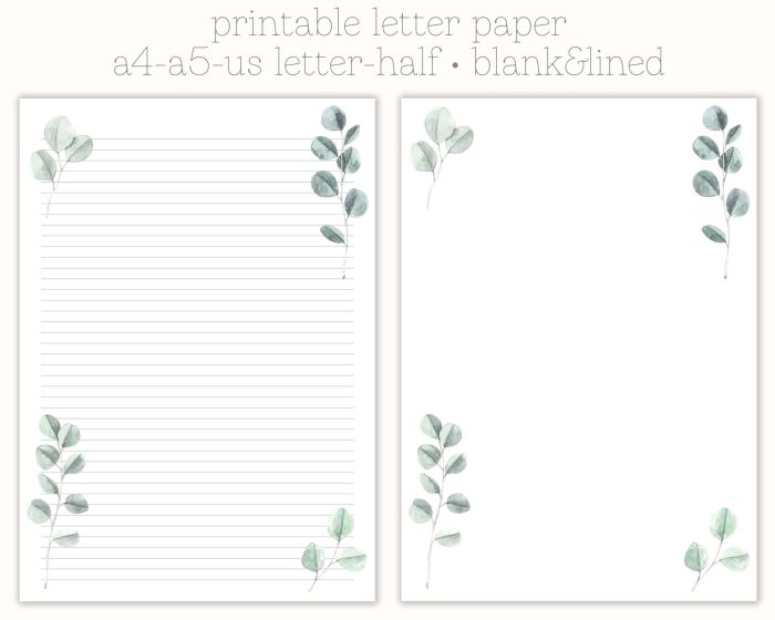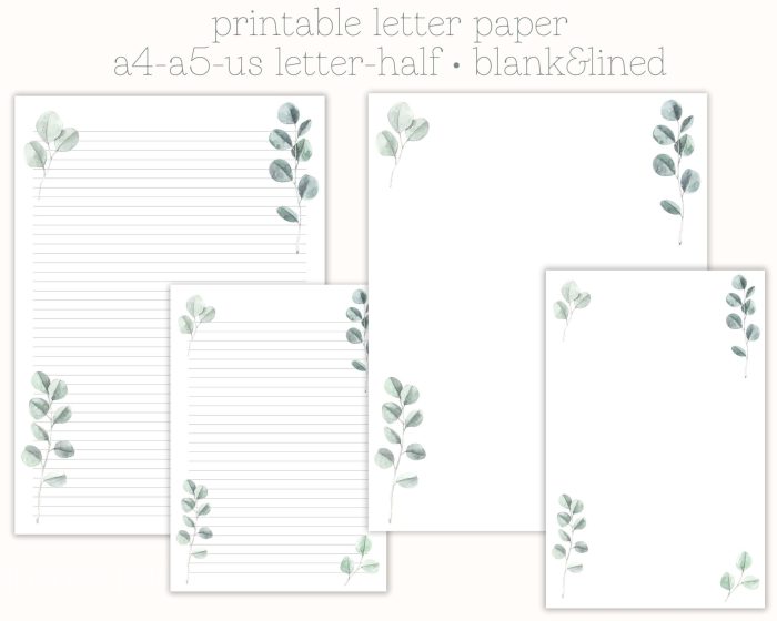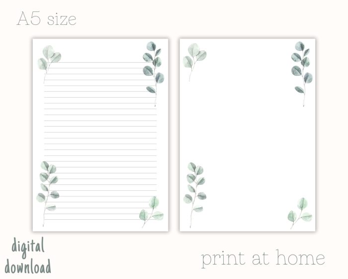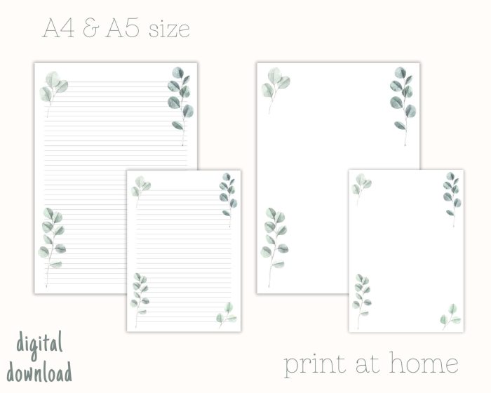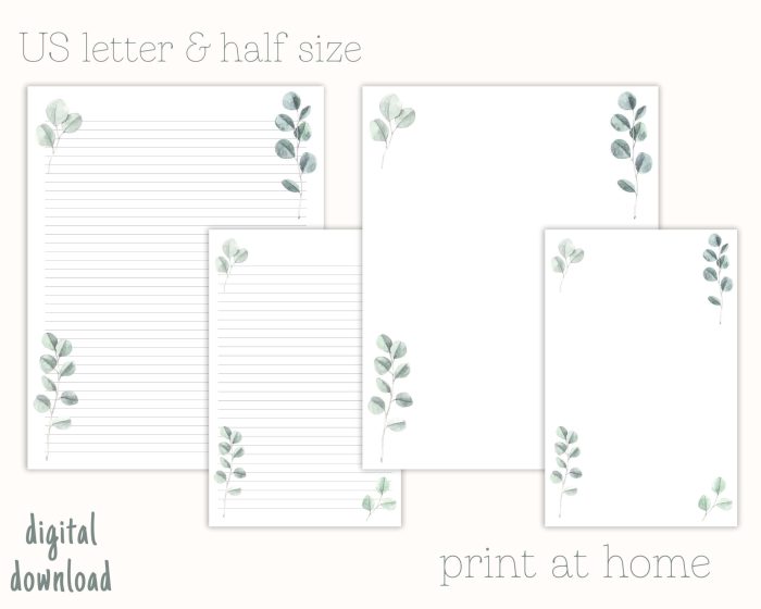 Eucalyptus Printable letter paper, writing paper, letter writing paper, letter writing set, letter stationery, pretty letter paper