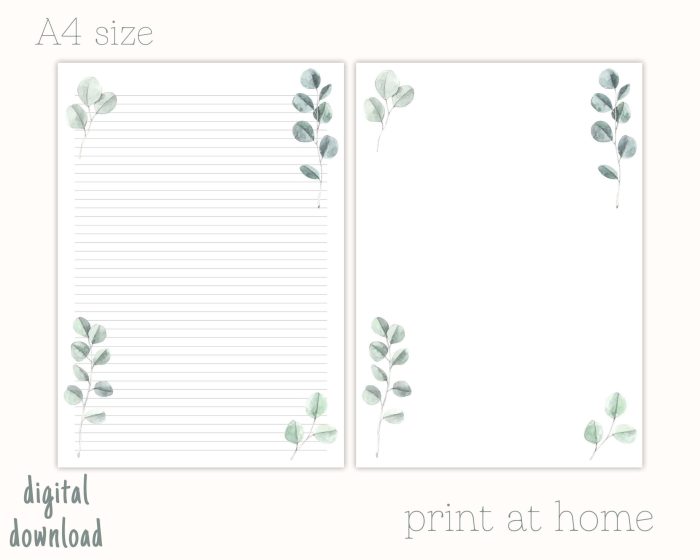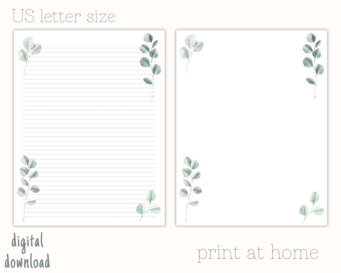 Eucalyptus Printable letter paper, writing paper, letter writing paper, letter writing set, letter stationery, pretty letter paper$1.64