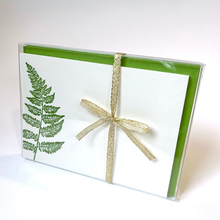 Fern Frond Flat Letterpress Note Cards – Green Stationery with Envelopes – Pack of 8 – Gift Ready with Bow – Heavy weight Cotton Paper Seller details$20.00