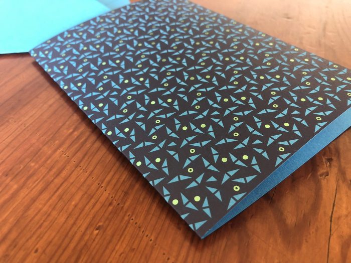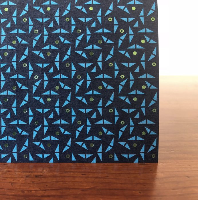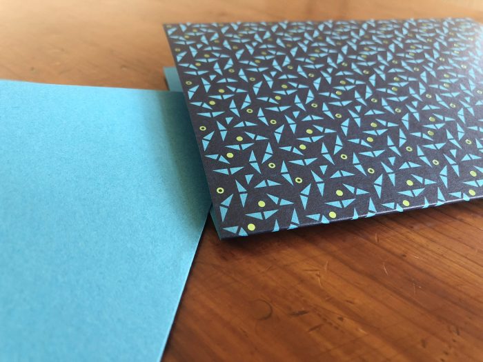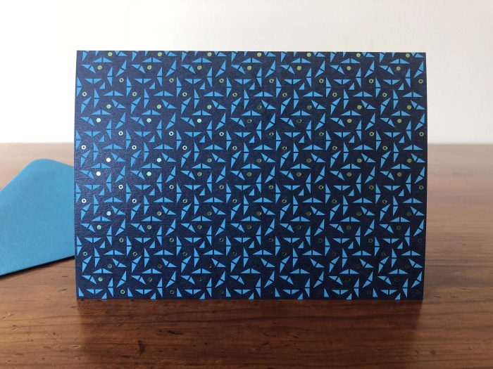Correspond in style with this uniquely modern stationery, available in five expressive color ways. Contrasting colors and textures peak interest from every angle. Inspired by late nineteenth-century textiles, the pinwheel pattern is featured on the front of these cards, while the interior and back are left blank, showcasing the paper’s distinct color.