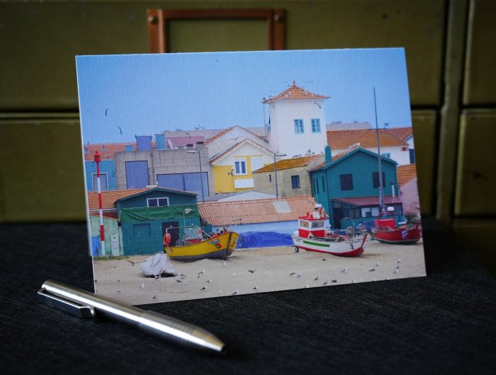 Elegant matte finish emphasizes the calm of this Portuguese beach scene and blank inside leaves plenty of room for personalized notes. Buy for your own use or the packet of twelve makes a great gift.