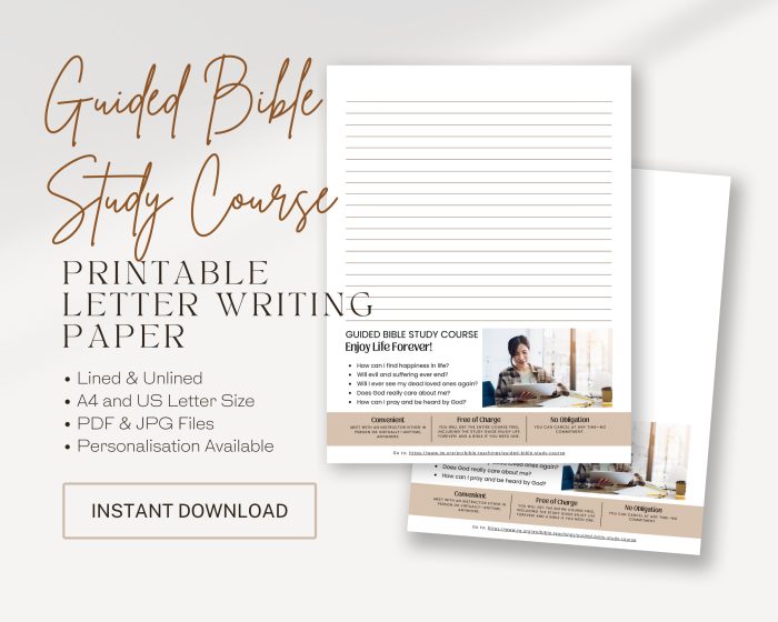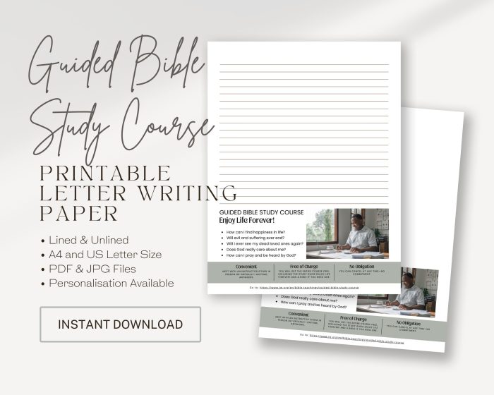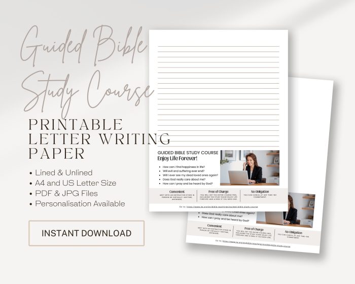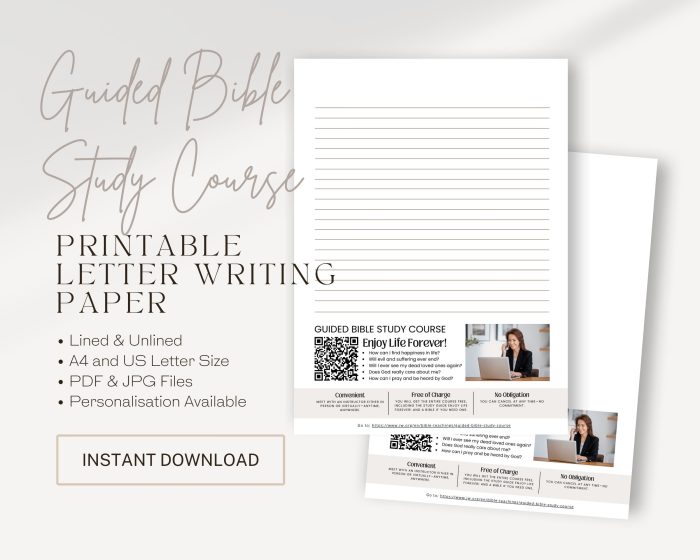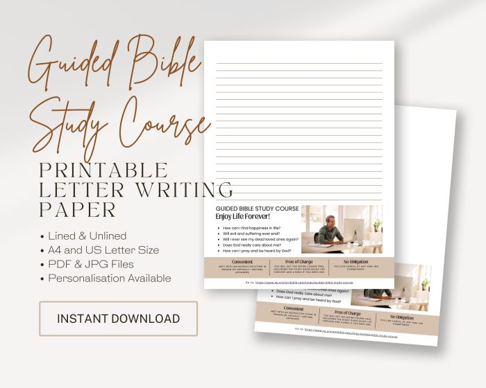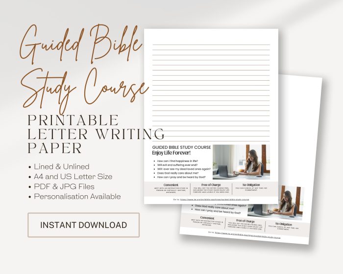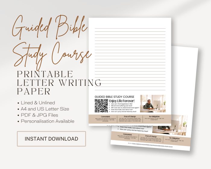 Be the first to review “Guided Bible Study Course, Enjoy Life Forever! JW Letter Writing Paper | Printable Letterhead | Letter Writing | JW Letter Writing Seller details”