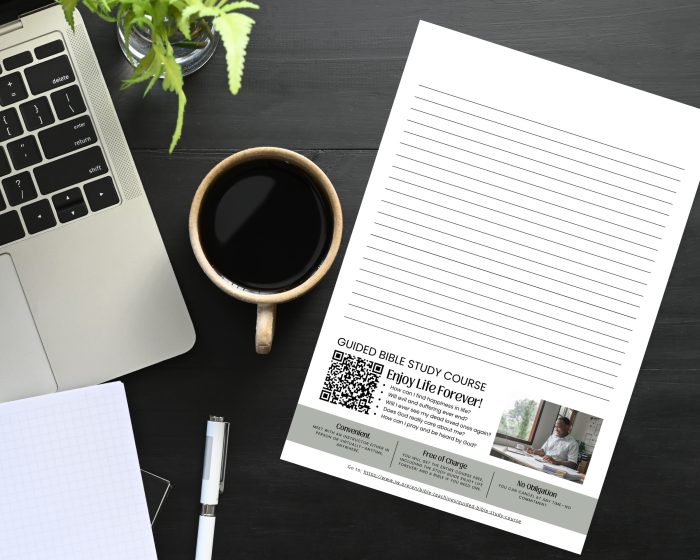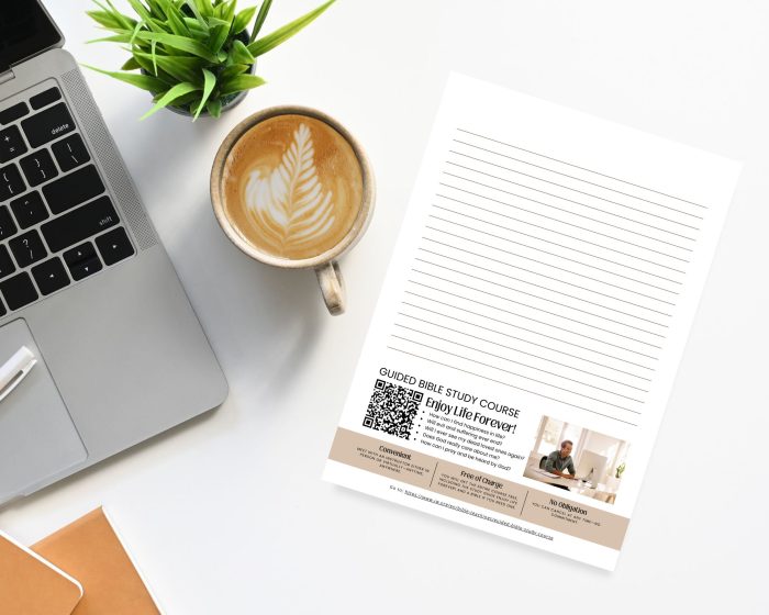 Special Bible Study letterhead, stationery designs for the Guided Bible Study Course – “Enjoy Life Forever Forever!” with link to jw.org. One A4 File has the QR Code that leads to page on jw.org about the Guided Bible Study Course