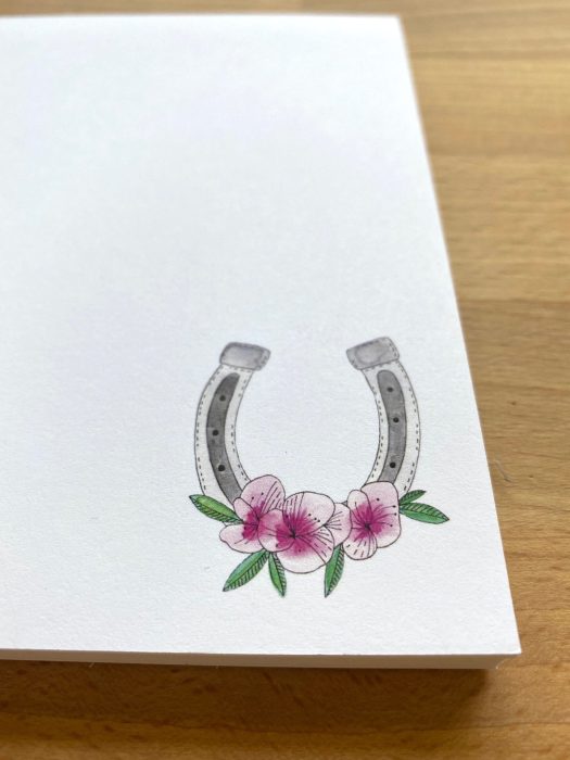 A beautiful set of stationery made with a special horseshoe and flower watercolor image from my original watercolor collection.