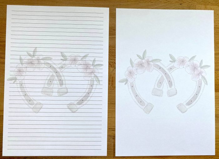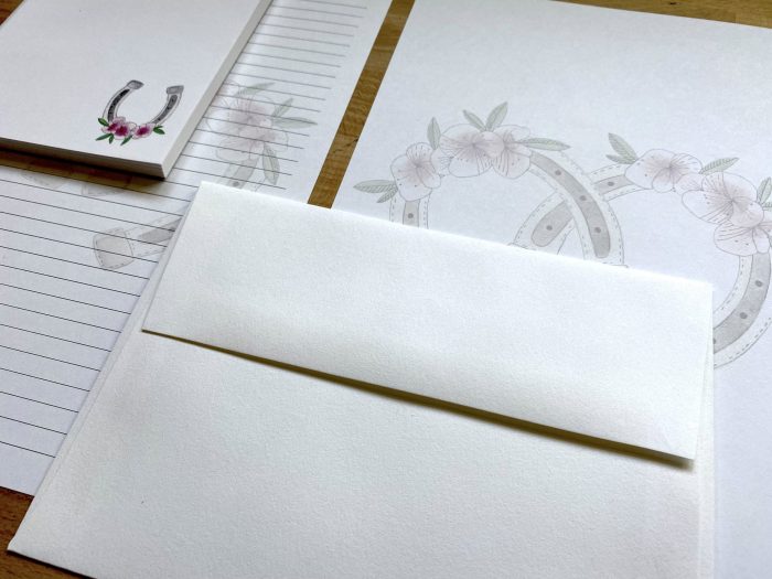 Horseshoe and Flower Watercolor Print Stationery set • 10 sheets (5 lined and 5 unlined) + 5 Envelopes • 50 Pages Notepad