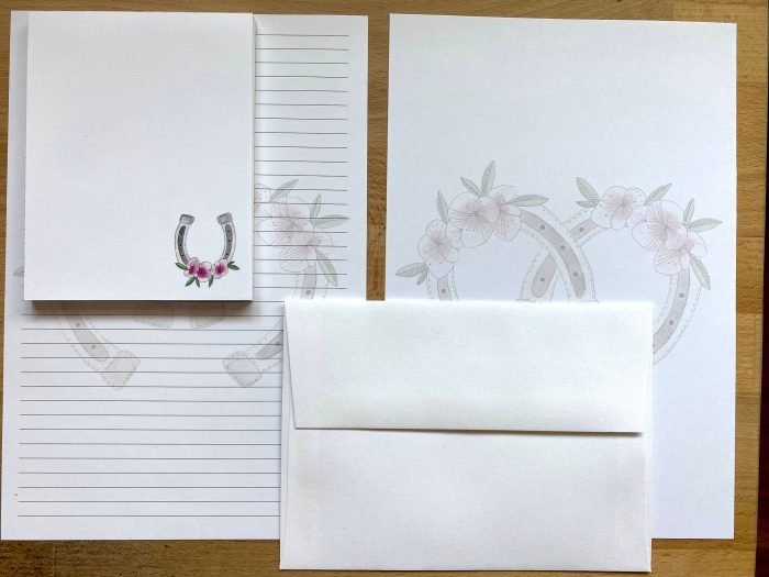 Horseshoe and flower stationery set, Horse lover Stationery set, Letter writing set and Notepad for Women and Girls, lined and unlined Seller details$20.00