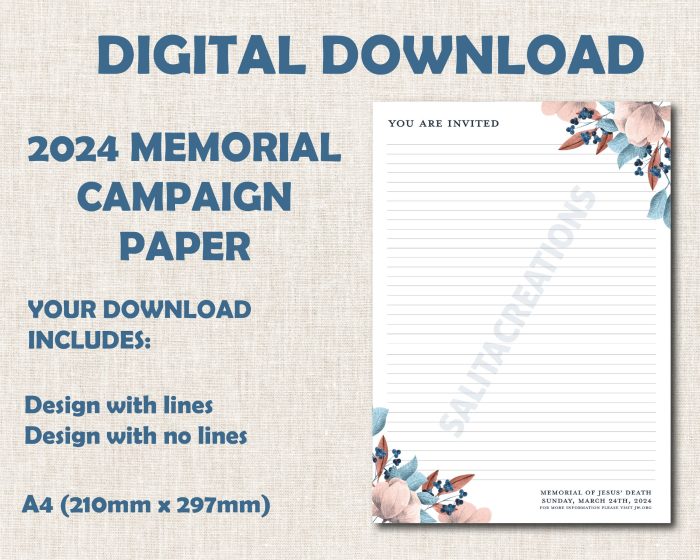 JW letter writing paper digital download lined website memorial campaign 2024 campaign bundle mountains invitation Seller details$1.92