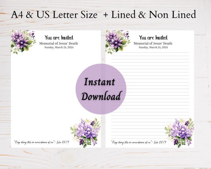 Be the first to review “JW Memorial 2024, JW Memorial Letter Writing Paper, JW Memorial Invite, jw Pioneers, jw gift, jw org, digital download”