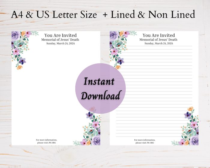 Be the first to review “JW Memorial 2024, JW Memorial Letter Writing Paper, JW Memorial Invite, jw Pioneers, jw gift, jw org, digital download”