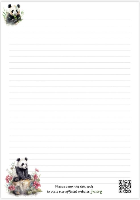 JW Panda Digital Letter Writing Templates – Lined & Unlined with and without QR Code Included Printable Jehovah’s Witnesses Stationary$1.27