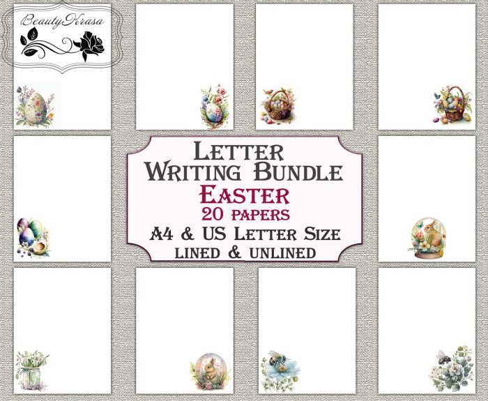 Be the first to review “Letter Bundle writing Stationery set,Printable stationary download Easter,unlined lined 20 papers”