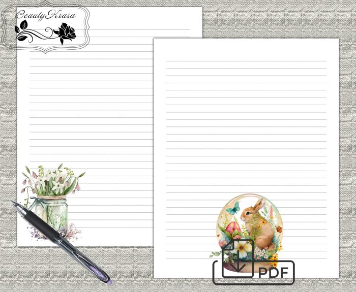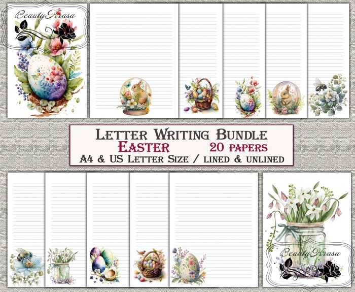 Letter Bundle writing Stationery set,Printable stationary download Easter,unlined lined 20 papers$2.14