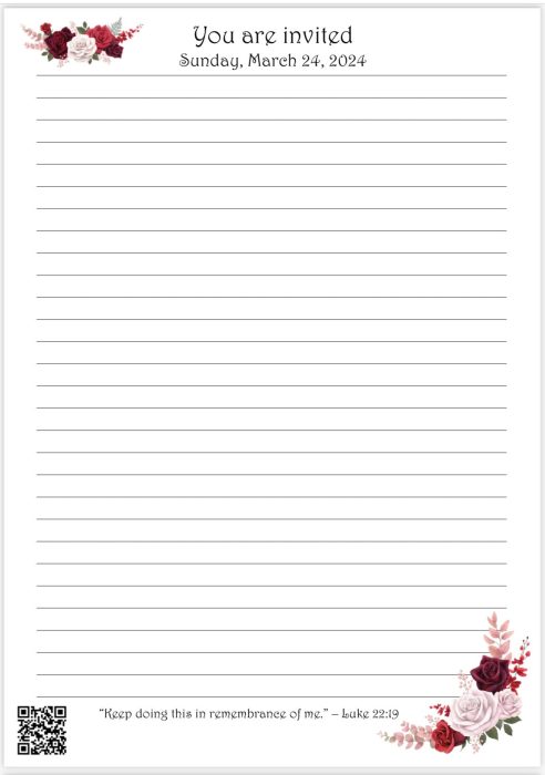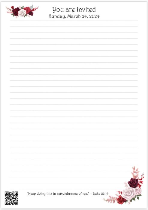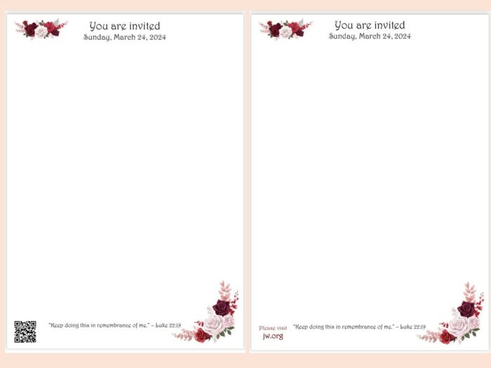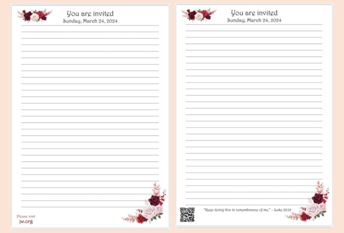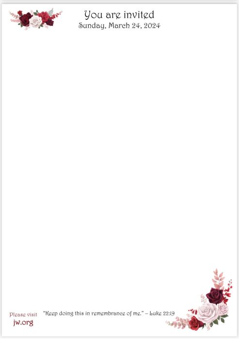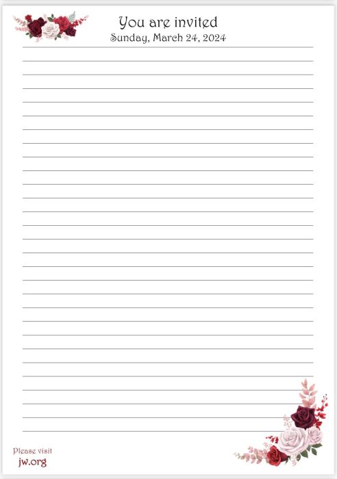 JW Memorial 2024 letter writing templates featuring a rose design – perfect for writing letters for first call or not at homes.