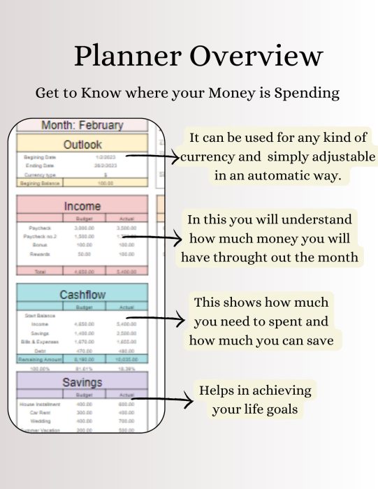 • The items in your purchase are for the purpose of getting information on your spending. It is not expected to be legal, accounting, or financial advice. I will not be obligated to any individual for any kind of damages, harm, loss, costs, claims, or other different liabilities concerning your utilization of the sheets.