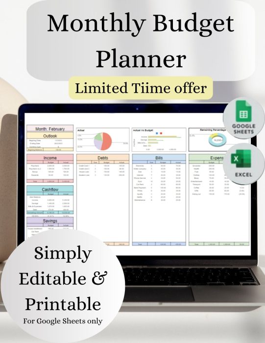 Monthly Budget Planner Google Sheets Budget Spreadsheet Excel Paycheck Budget Template Weekly Expense Tracker Wallet-Friendly Budget Planner$1.35