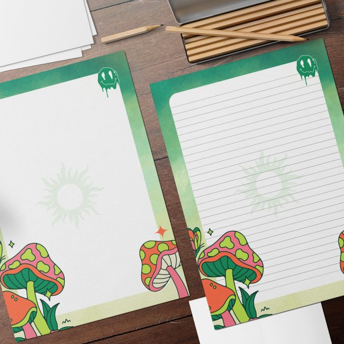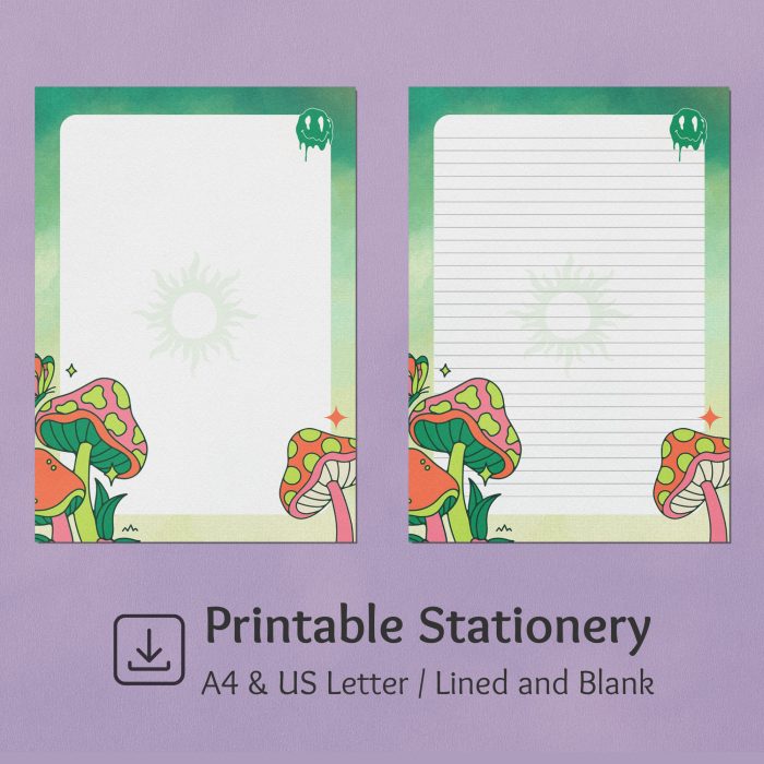 Step into a realm of boundless creativity with our Printable Psychedelic Stationery Paper! Immerse yourself in the surreal allure of trippy mushroom art, enhancing your letter-writing experience. This digital download offers versatile blank and lined journal pages, effortlessly printable at home. An ideal gift for psychedelic art enthusiasts, this set is a printable psychedelic art gift that transcends the ordinary. Unleash your imagination with this captivating and vibrant psychedelic stationery paper, turning each correspondence into an artful expression!