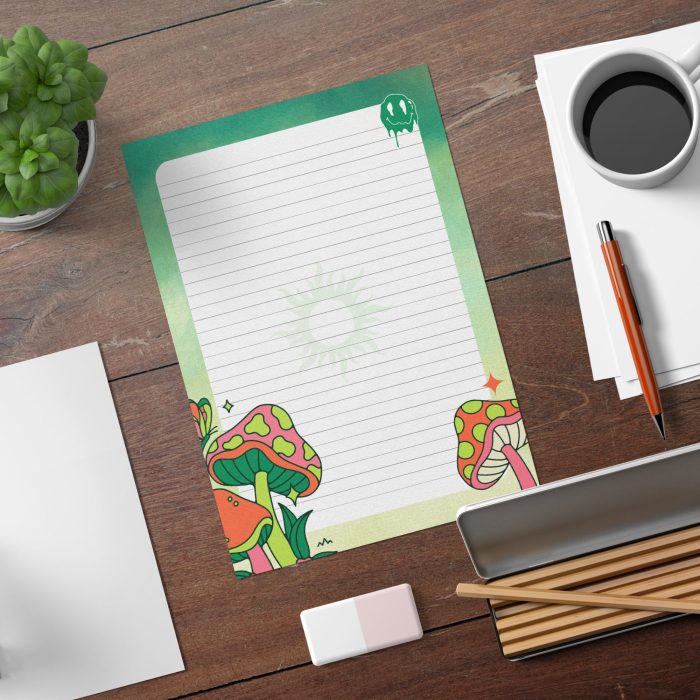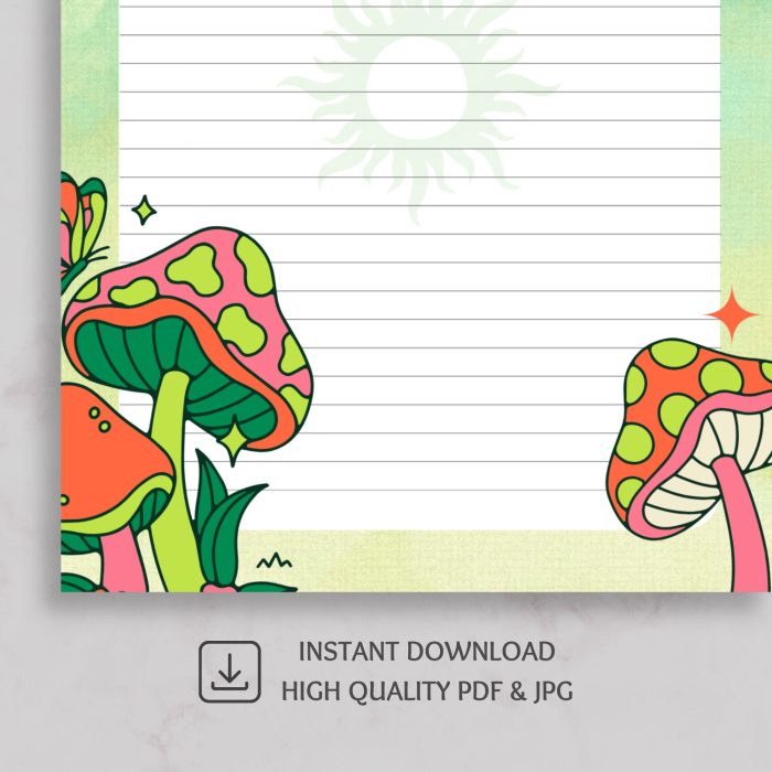 “Mushrooms Stationery Paper Printable, Trippy Psychedelic Mushroom Art Journal Pages, Letter Writing Paper, Lined Paper, Psychedelic Gifts”