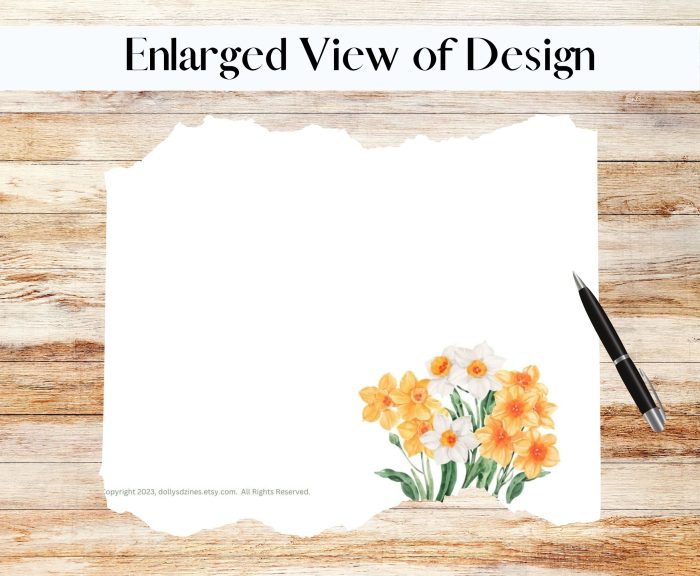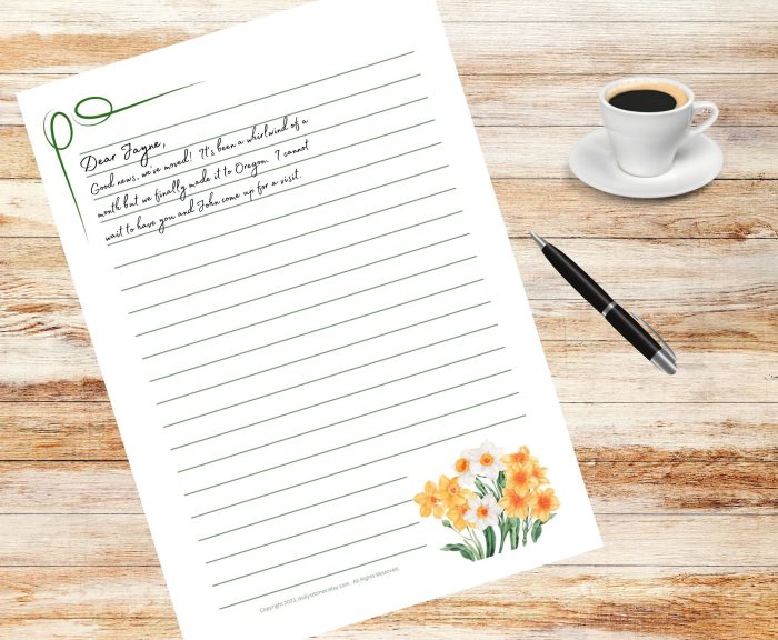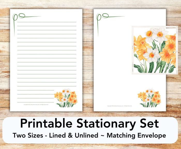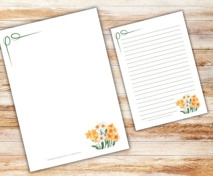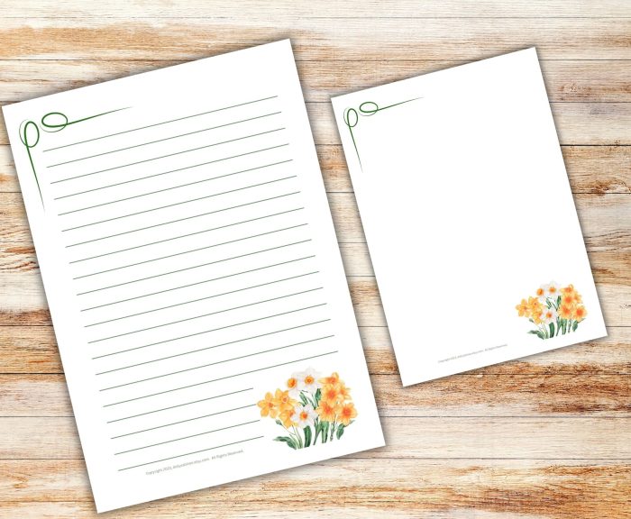 …Two 8.5”W x 11”H Printable Stationary NARCISSUS Templates, lined and unlined