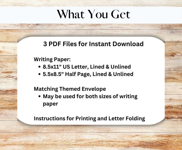 You will receive PDF files for each of the stationery items with instructions on how to print and fold the envelope. Give as a gift or keep to write notes to your loved ones and friends.