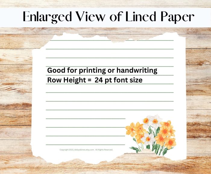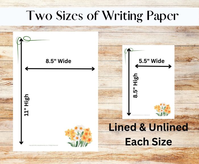 …Two 5.5”W x 8.5”H Printable Stationary NARCISSUS Templates, lined and unlined