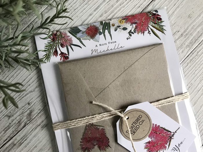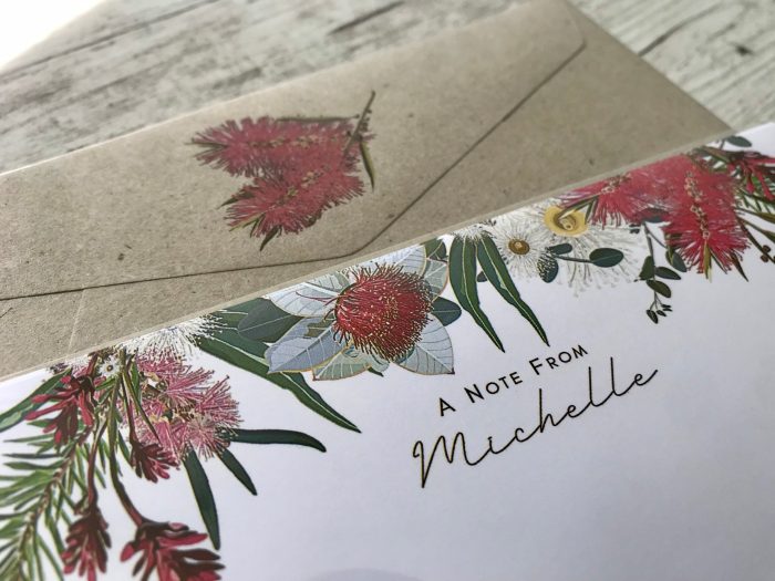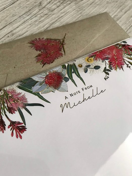 Personalised Writing Paper Set – AUSTRALIAN NATIVE FLORA – Set Of 20 – Personalised Notepaper with coordinating kraft envelopes$16.56