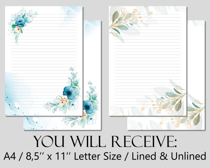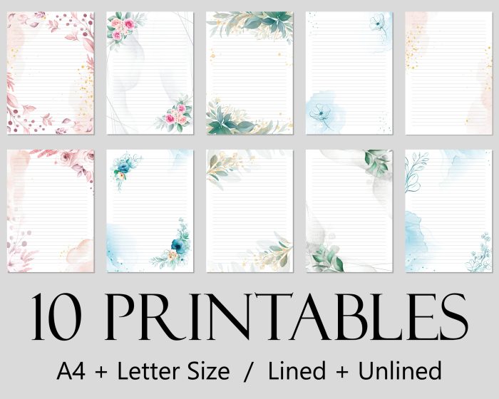 Printable Floral Stationery, Digital Download, Writing Paper 10 Flower Designs. A4 and 8.5×11 PDF JW Letter Writing Bundle Ministry Supplies$3.83