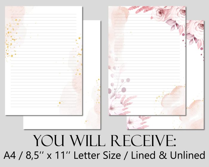 These beautiful flower designs are perfect for writing letters and notes. Buy it once and print over and over as long as you want!