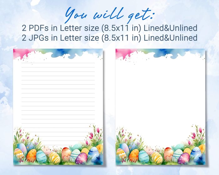 Printable Stationery paper with an Easter background, Happy Easter Printable Writing Paper, Goodnotes template, Includes envelope template$1.90