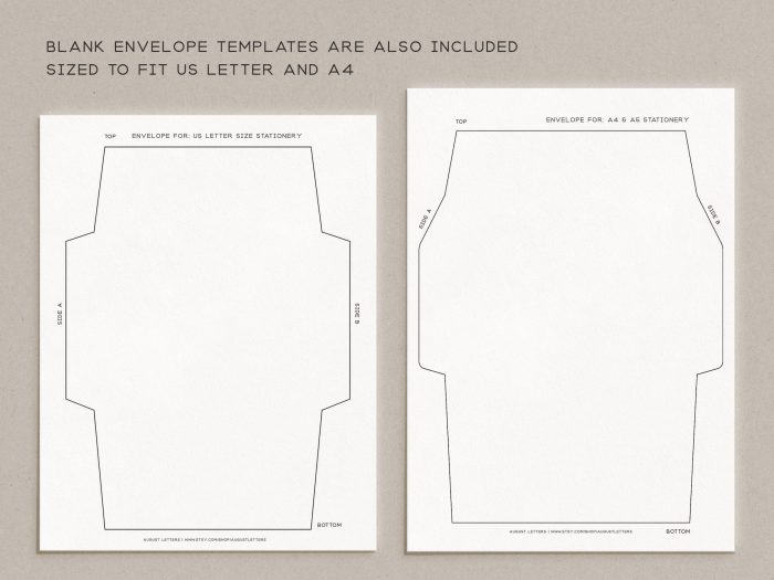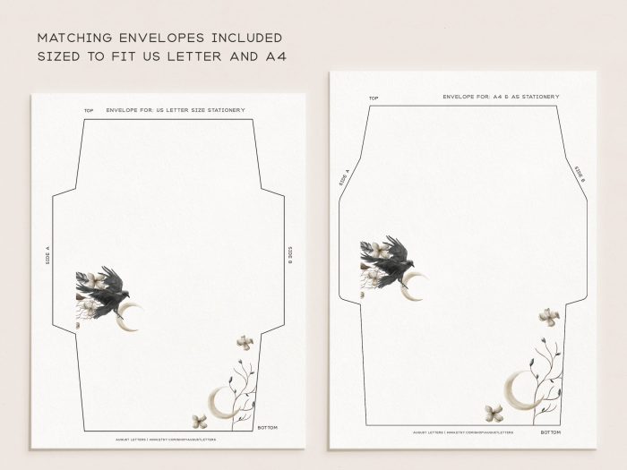 Our new stationery kits now include matching envelope designs as well as blank envelope templates! With your purchase, we’ll include a guide on assembling your envelopes and different ways to use your new templates. One envelope fits US Letter size stationery