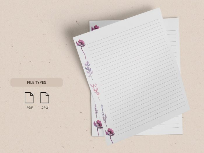 Be the first to review “Printable Stationery Set With Envelopes | Lined Unlined Digital Letter Writing Paper | A4, US Letter 8.5×11 | Pink Purple Florals | FL17”