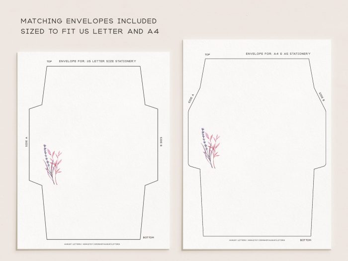 Our new stationery kits now include matching envelope designs as well as blank envelope templates! With your purchase, we’ll include a guide on assembling your envelopes and different ways to use your new templates. One envelope fits US Letter size stationery