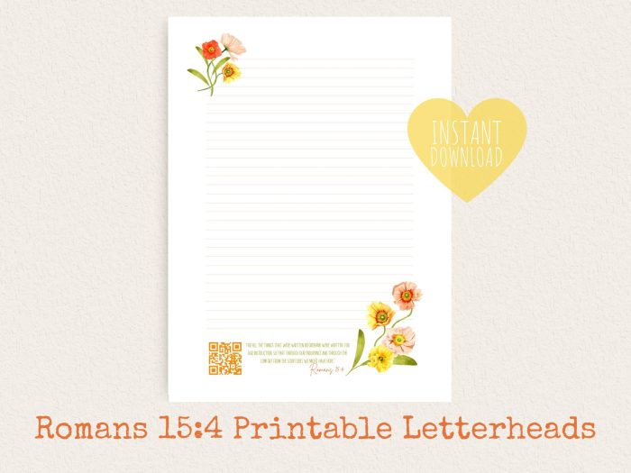 Romans 15:4, JW Letter Writing Paper | JW Letter Writing | Jehovah’s Witnesses | JW Printable | Letterheads | Spring Bohemian Flowers Seller details$3.84