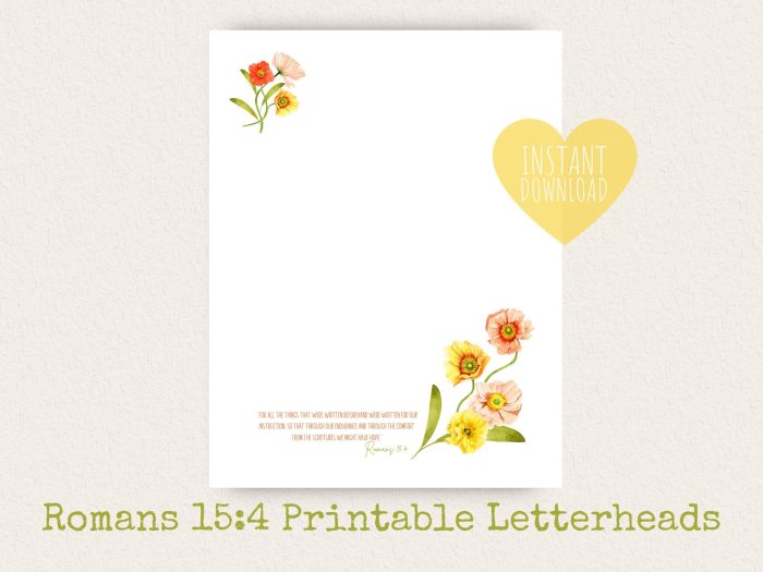 Romans 15:4, JW Letter Writing Paper | JW Letter Writing | Jehovah’s Witnesses | JW Printable | Letterheads | Spring Bohemian Flowers