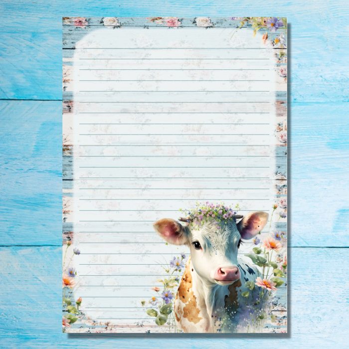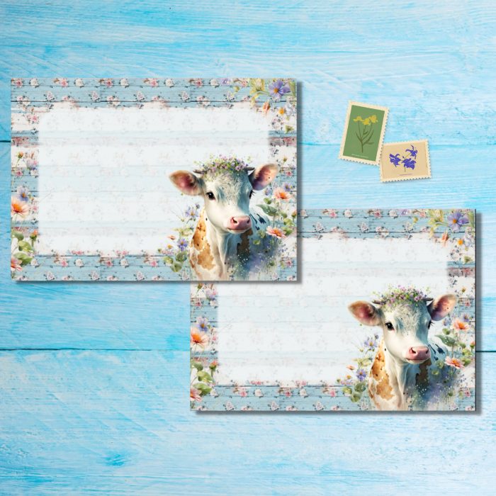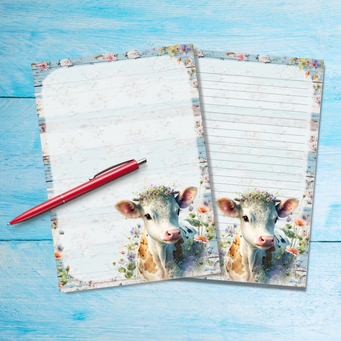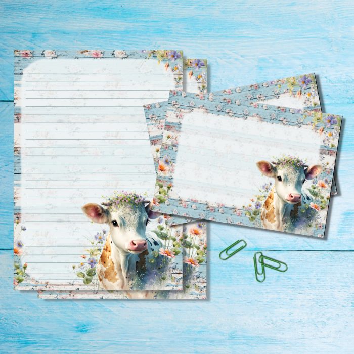 Shabby Chic Cow A5 letter writing stationery set, penpal supplies, Snail mail kit, Lined or unlined sheets with matching envelopes/stickers$10.67