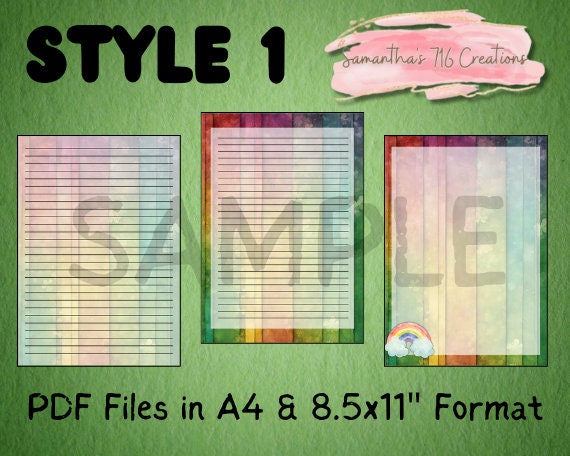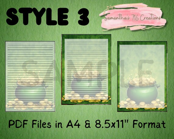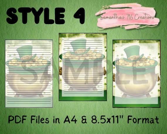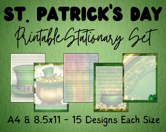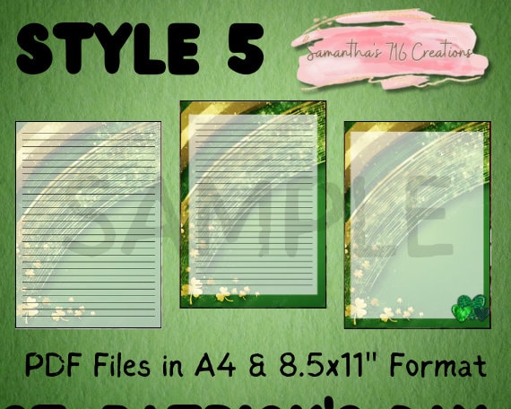 Celebrate St. Patrick’s Day in style with this festive printable stationary set! With 5 unique designs with 3 patterns each, you’ll have plenty of options for your notes and letters. Each design includes 2 files with lines and one blank file, so you can choose the layout that suits your needs. (EXAMPLES OF THE DESIGNS ARE IN THE LISTING PHOTOS) Each PDF files includes 15 pages.