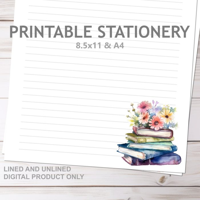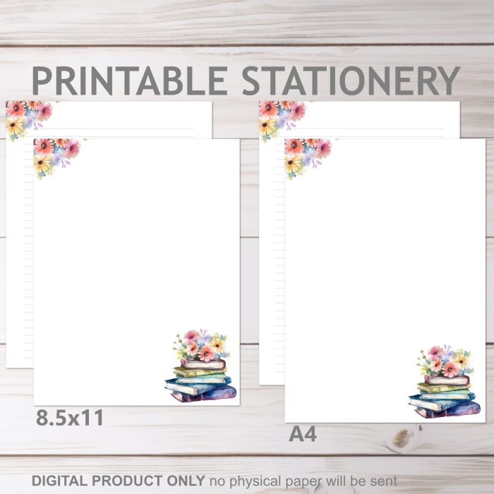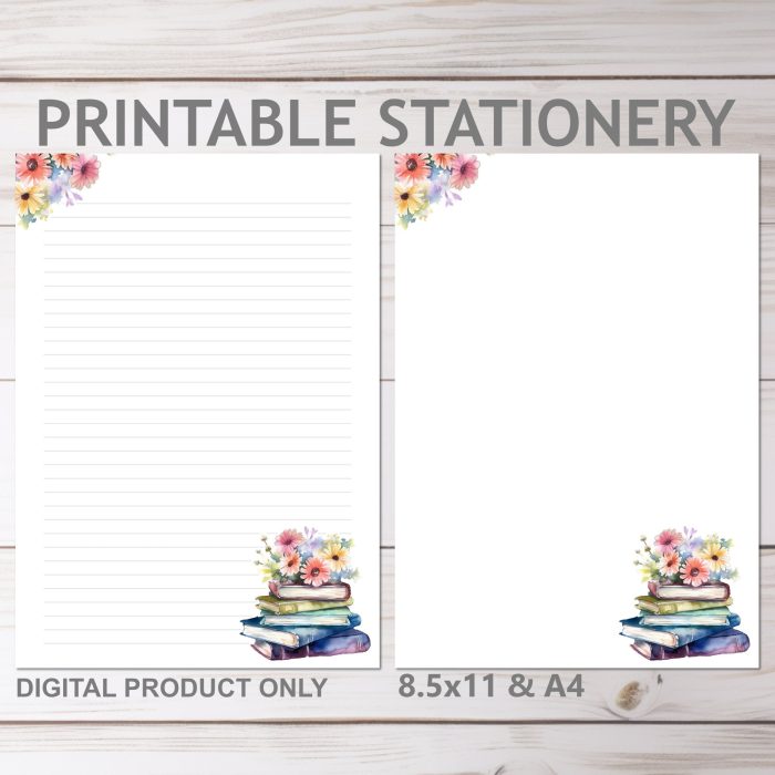 Be the first to review “Stack of Books With Flowers Printable Stationery Set Lined and Unlined in A4 and 8.5×11 Letter Size Print at Home Writing Paper for Penpals”
