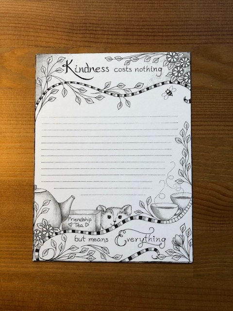 “Kindness costs nothing, but means everything” is a notepaper set that I created after the covid shutdowns were finally over. I wanted to convey how much kindness means in our world. I also want to do my part in keeping the art of letter-writing alive by designing pretty notepaper! 🙂 You can fold these sheets in half and tuck them into a card, or send them alone as a letter.